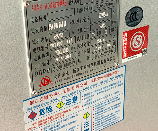 1.3.为适应防爆环境需要,风机可做成防爆风机,防爆等级为EXdllBT4,适用于易燃、易爆气体的场所。