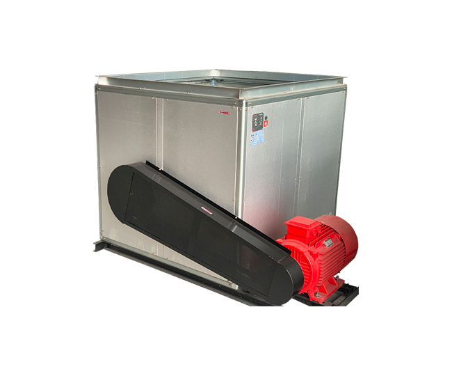 1.1.HTFC型柜式离心风机是一种高效率、低噪声箱式离心风机。产品由低噪声前倾多翼离心风机、电机、轴承、传动件、消声型箱体等组成。根据安装位置的不同,提供12种不同角度的进出风口位置,以满足用户不同的安装环境需要。根据消防与通风的要求不同分A型和B型两种类型,A型电机装在箱体外,用于消防排烟,并经国家消防装备监督质量检验中心按GA211-1999《消防排烟风机耐高温试验方法》进行耐高温试验,能在300℃高温条件下连续运行60分钟以上;B型电机装在箱体内,用于通风换气。