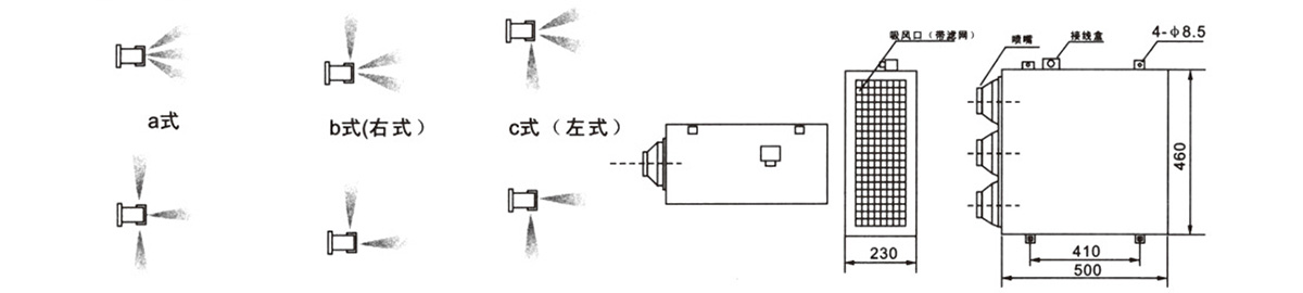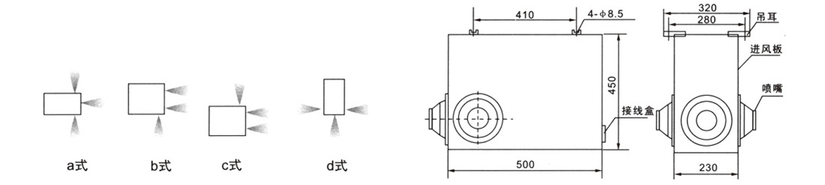 (2)YDF-B卧式诱导风机示意图(万向球形喷嘴)